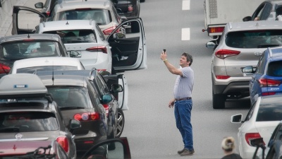 Dogs walking on the breakdown lane, bachelorettes partying in the car and a bored child looking for something to do. Who will snap first?
